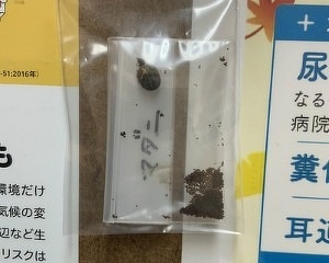 本文の下にある写真はその子から診察の時に落ちたマダニの1匹です。