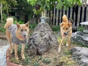 ドッグラン には行けないので、実家の庭を先輩犬きなこと走り回る姿は本当に楽しそうで、毎回家族で爆笑しています。