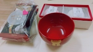 私は毎日お昼にお味噌汁をいただくので漆のお茶碗をいただきました!