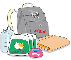 災害時、飼い主は猫と同行避難をすることになると思います。避難所生活となった場合、救援は人を優先、ペットは後回しになります。猫のケアは飼い主が責任を持ってやるべきということを念頭においてください。 〜猫のための避難グッズ〜
