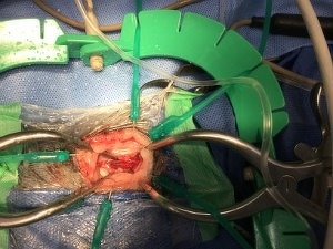 この方法は、視野が狭くなるため慣れないと難易度は増しますが、片側椎弓切除術よりも侵襲性が少なくすむという利点があります。