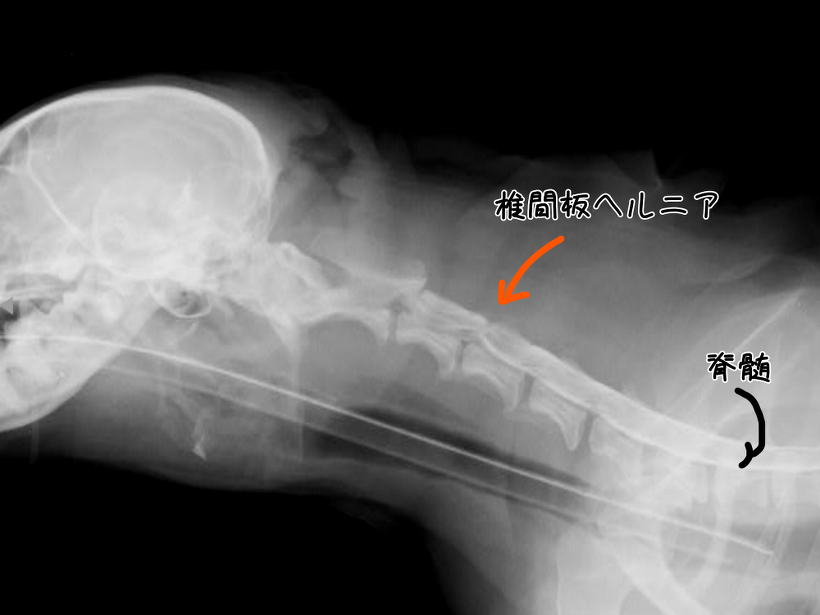 診断には、MRIやCT、脊髄造影X線検査などが必要になりますが、年齢や犬種、症状や、症状の出方、神経学的検査などから、おおよその診断をつけることができます。