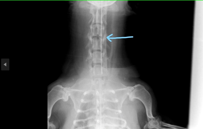 写真で首の骨の中に二重の線が見えるかと思います。