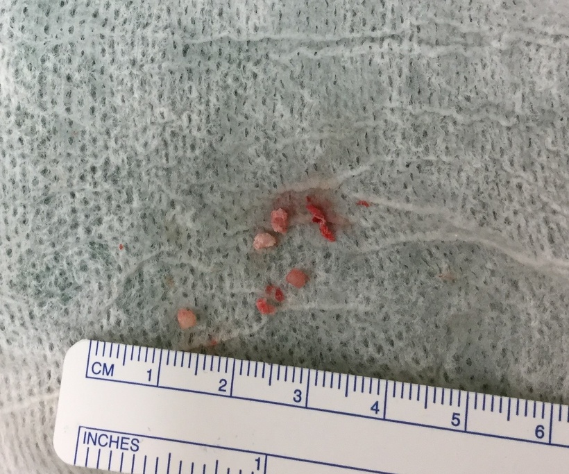 写真の椎間板物質はその一部で、出ていたものはこの3~4倍ありました。