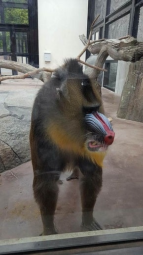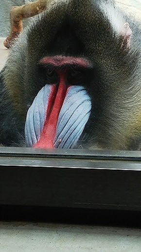 また、口をムキムキして歯を見せるのは威嚇しているのかと思いきや、マンドリルのご挨拶だそうです(*^^*)