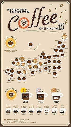前回、コーヒーの話をしましたが、全国でコーヒーの消費量が多い地域はどこだかご存知ですか?
