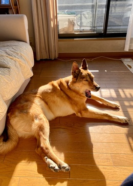 警戒心がかなり強く、病院がとっても苦手な怖がりさんですが、僕が実家に帰るといつも荒れ狂ったように全身で喜びを表してくれるかわいい一面もあります!大きな身体で暴れるので毎回大変ですが...(笑)