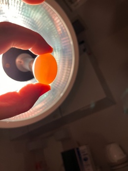 卵は高いところから落ちたので、もう生きてはいないのかもしれませんが、保温機に入れて毎日光を当てて観察しています。