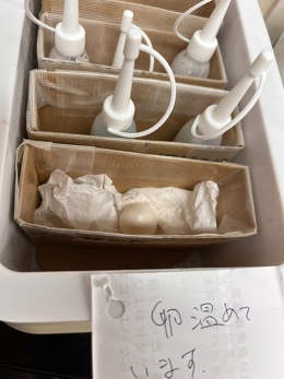 捨ててしまうのは忍びなく、とりあえず耳掃除の洗浄液を温めておく保温機に卵を入れておくことにしました。