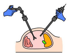 腹腔鏡(ふくくうきょう)手術は、「低侵襲手術」の一つで、体に大きな傷をつけずに手術を行う方法です。