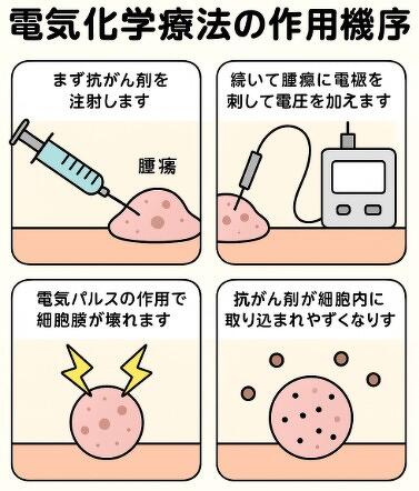 「抗がん剤 × 電気の力」でがん細胞を攻撃する治療法 です。