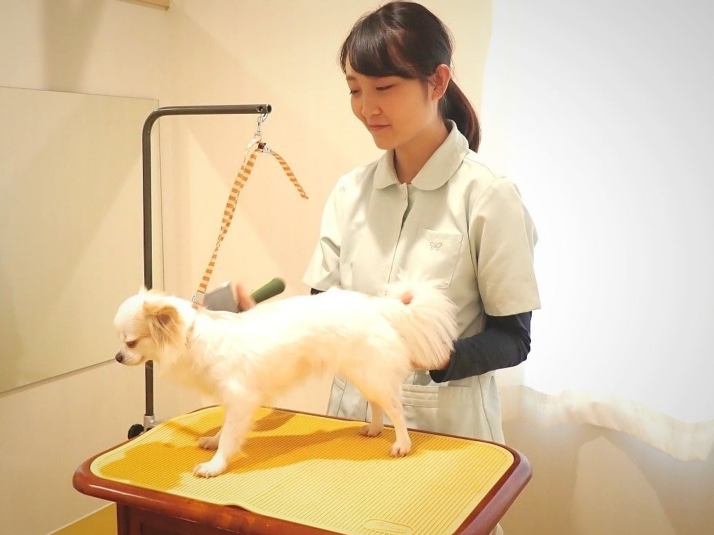 皮膚科の勉強をしているトリマーによる薬浴・スキンケアシャンプーを提供しております。洗い方やシャンプー剤・保湿剤の選定もその子の皮膚の状態に合わせておこないます。炭酸泉やマイクロバブル、マイクロミスト保湿など様々な器具を駆使して、皮膚のケアをサポートします。 |