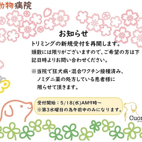 6月から新しく経験者のトリマーが仲間に加わってくれることになり、6月...